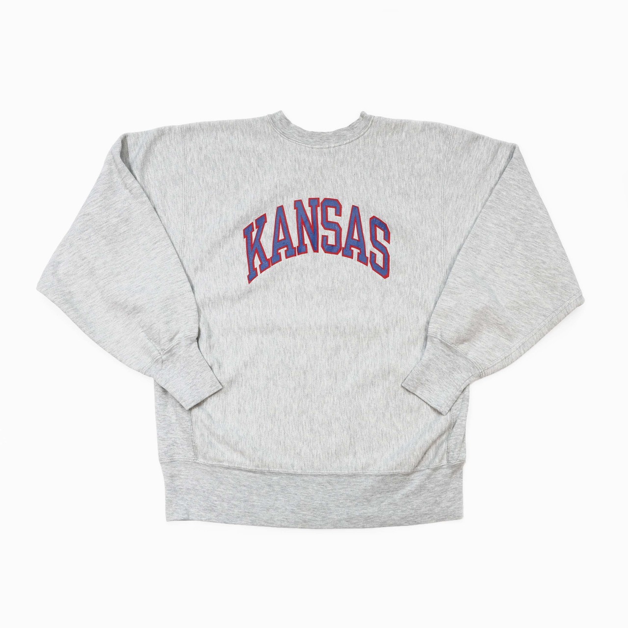 1980-90年代のChampion Reverse Weaveスウェットシャツ。KANSASのラバープリントが入ったカレッジものです。まだまだ着ていただける1着です。