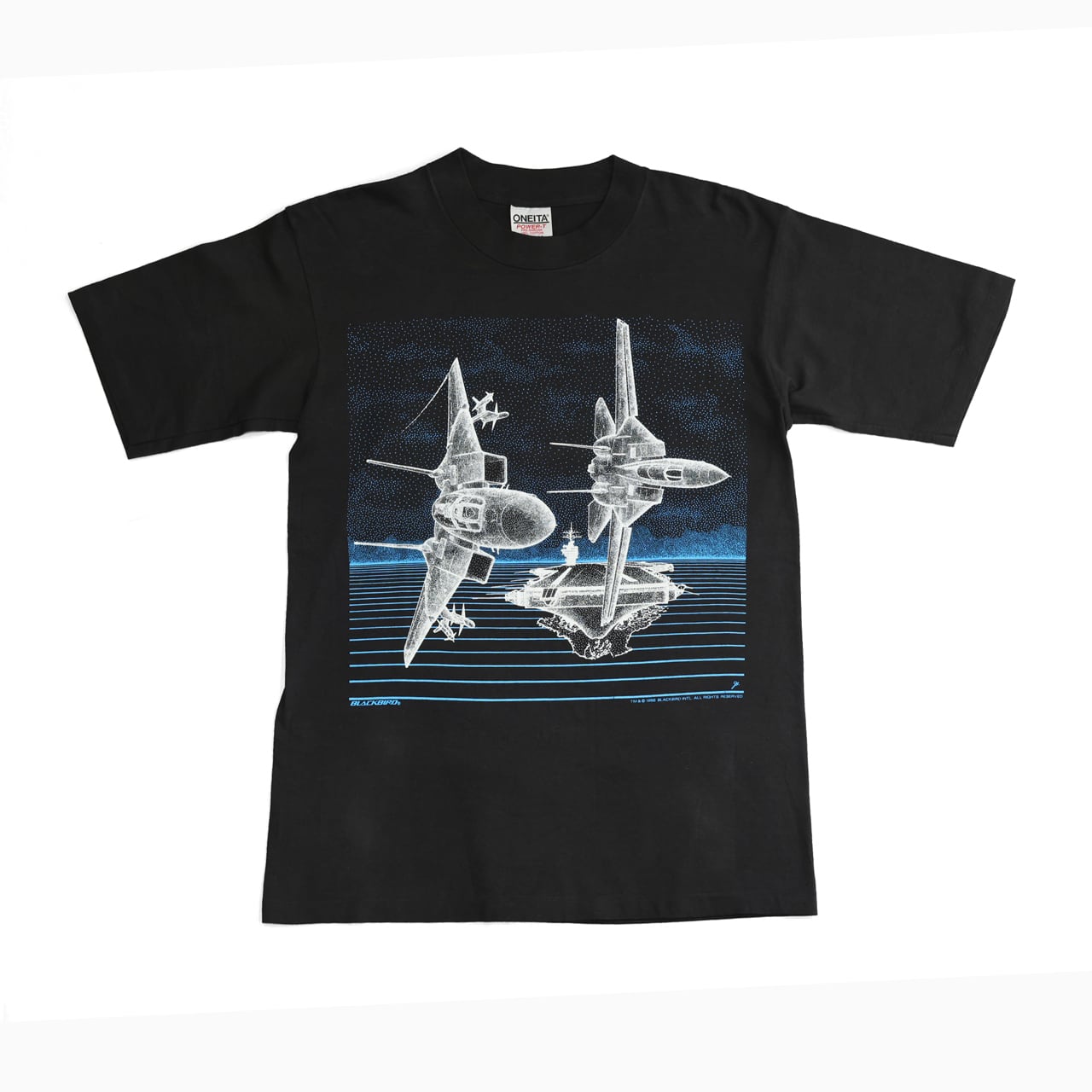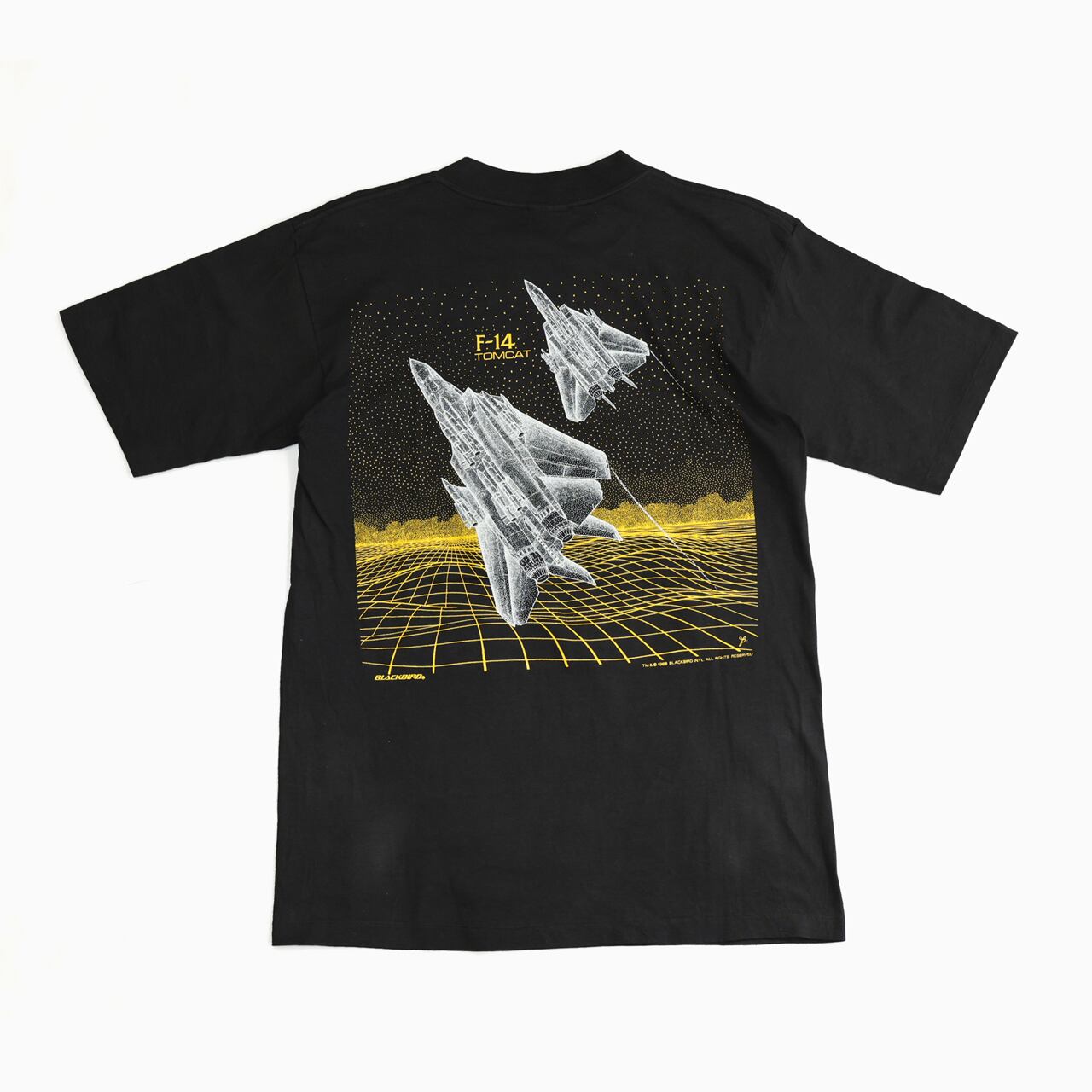 80’s デザインブランド BLACKBIRD INTERNATIONALのレトロフューチャーなスタイルで描いたプリントTシャツ。F-14 TOMCATが描かれてます。