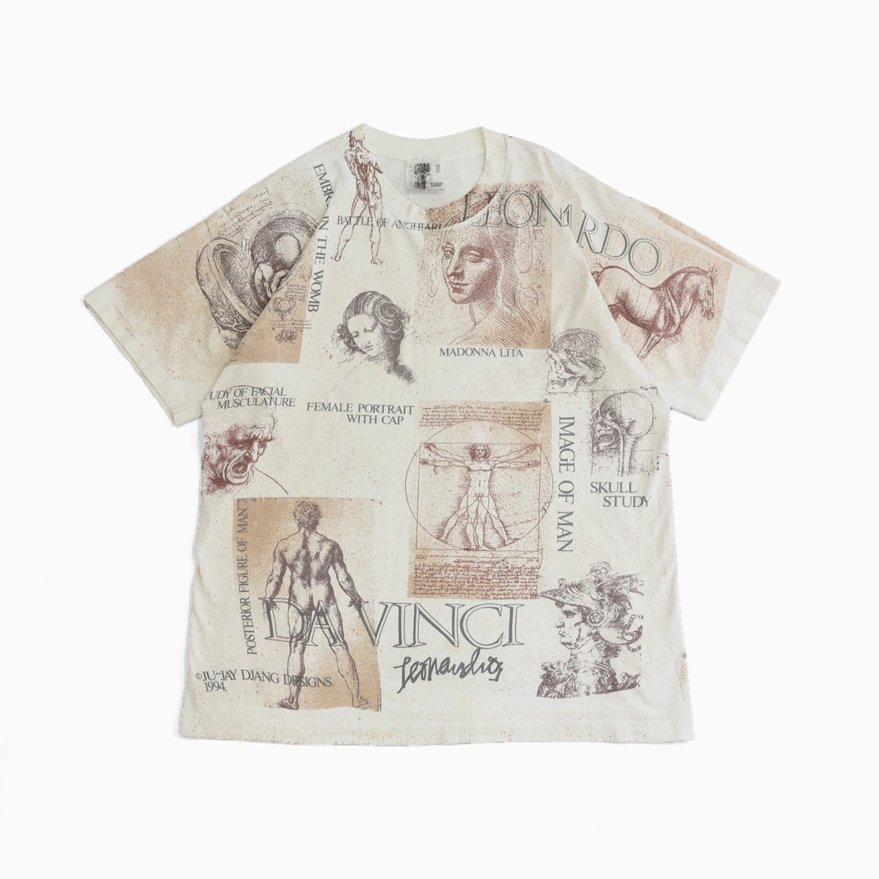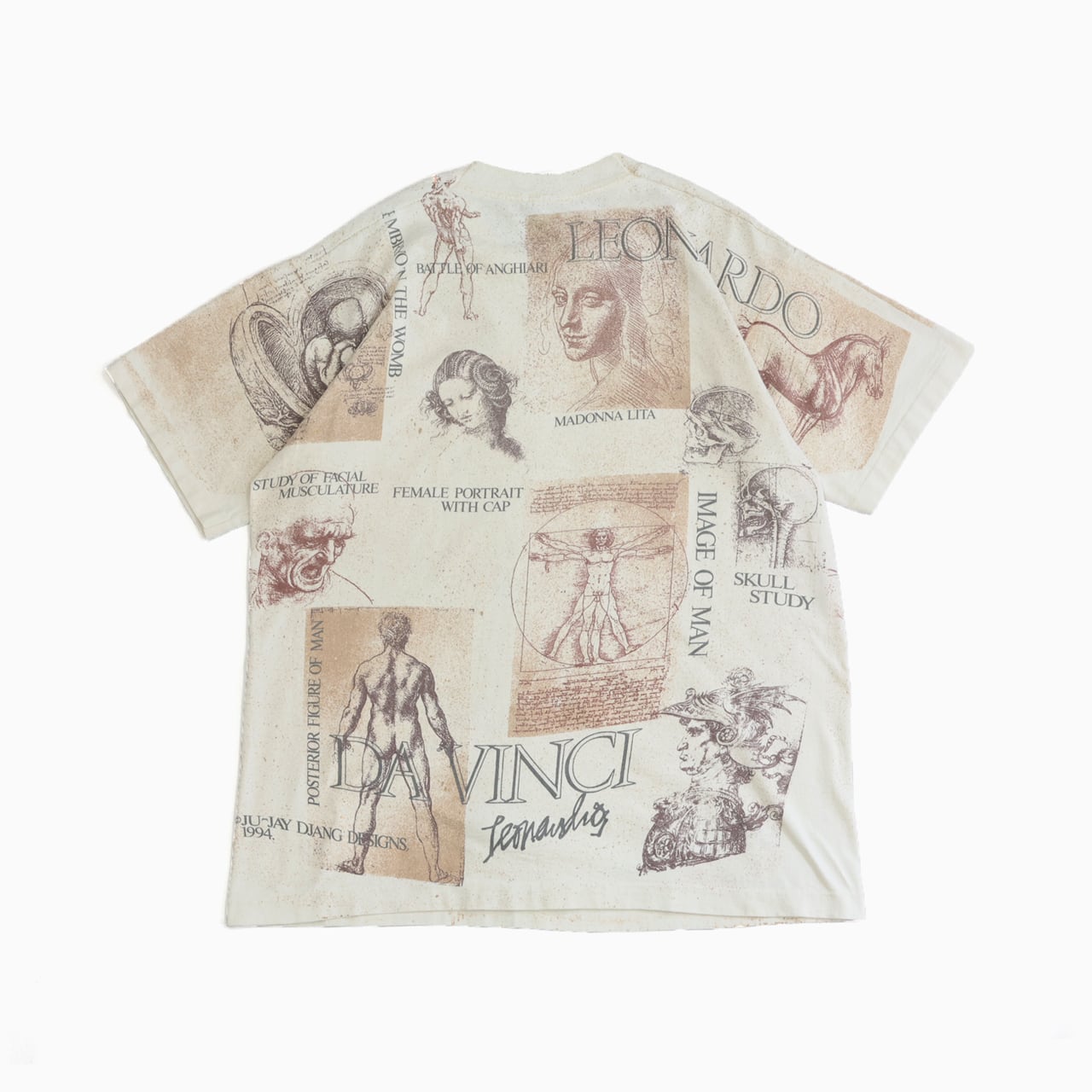 ヴィンテージ市場でも年々希少になってきているアートTシャツ。こちらはレオナルド・ダ・ヴィンチのスケッチが全面にプリントされた90年代製の1枚。唯一無二のヴィンテージをお楽しみください。