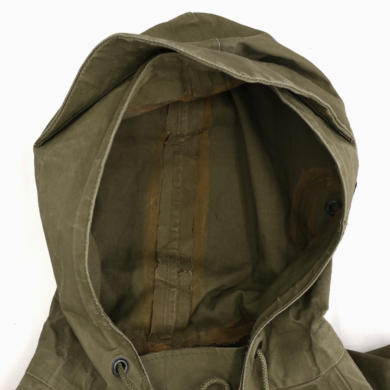 1960年代にアメリカ海軍で使用された通称N-2デッキ レインパーカー。悪天候下での着用を目的として設計され、機能性と無骨さを兼ね備えた1着です。経年劣化により従来の機能は衰えてはいますが、ヴィンテージらしい無骨さを普段のスタイリングに落とし込んではいかかでしょうか。