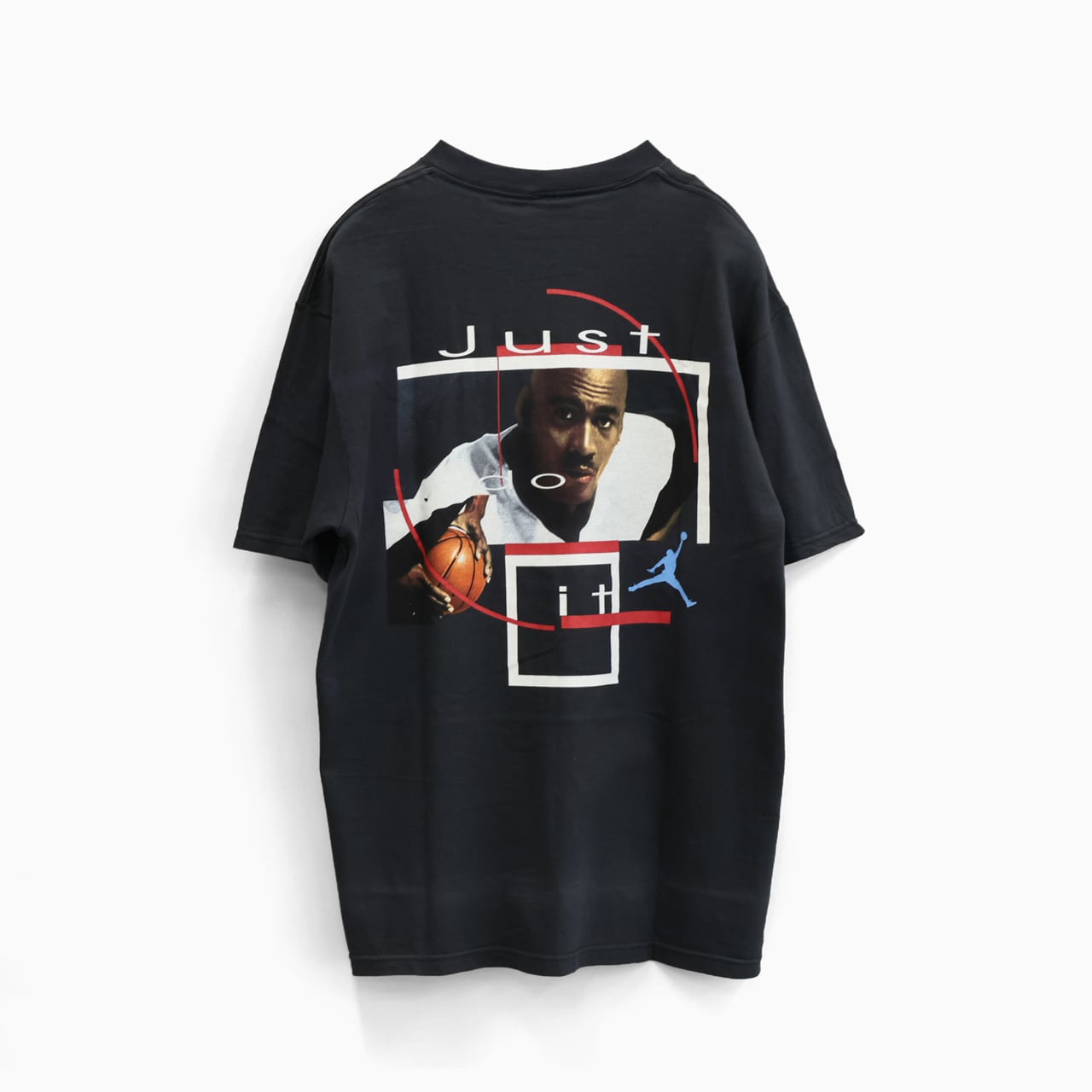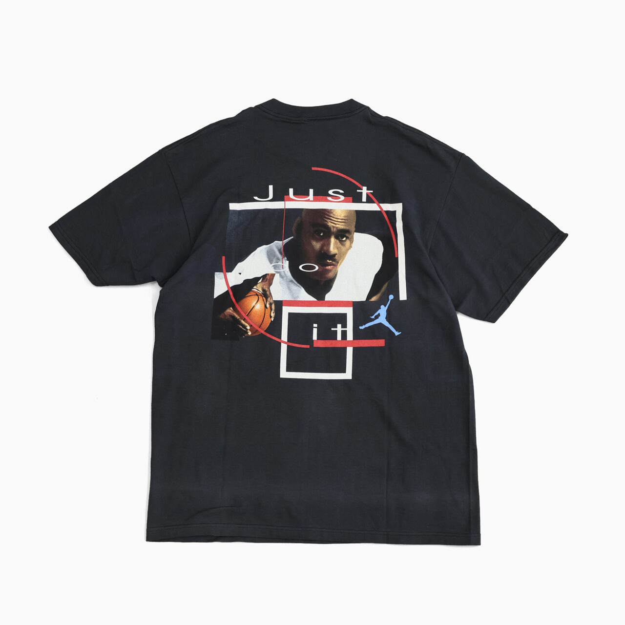 フロントにはメッセージとスウッシュをあしらったタイポグラフィ。背面にはジョーダンとグラフィックがプリントされた90’sを象徴する1着です。