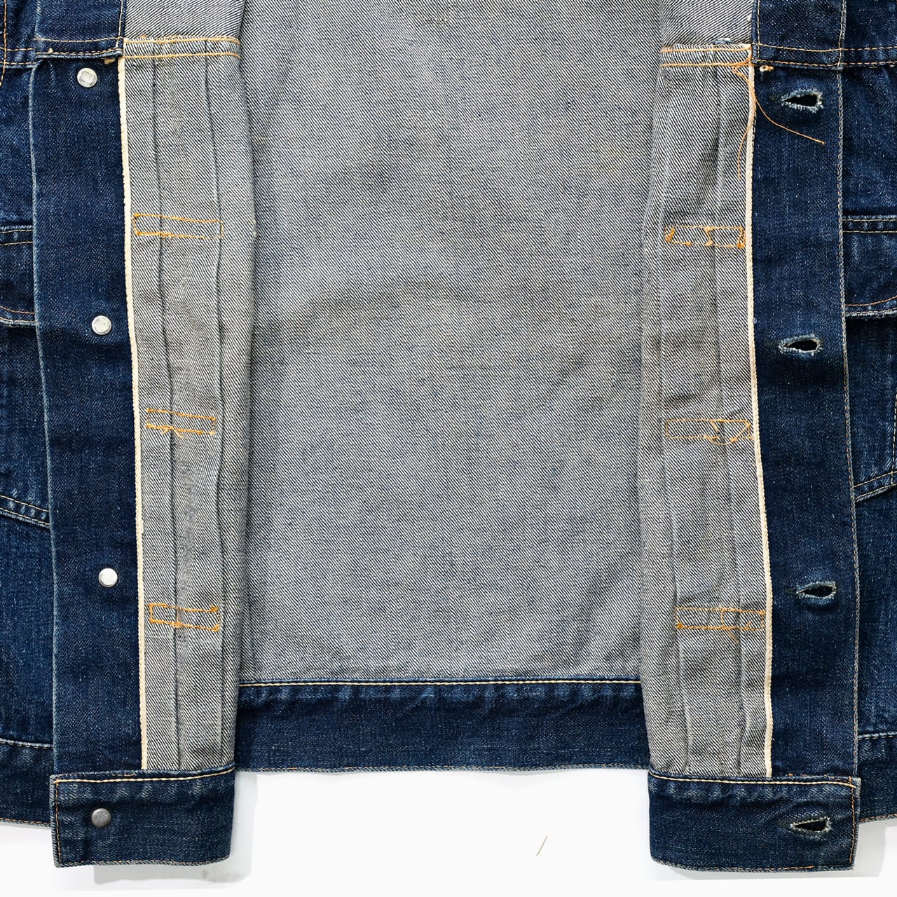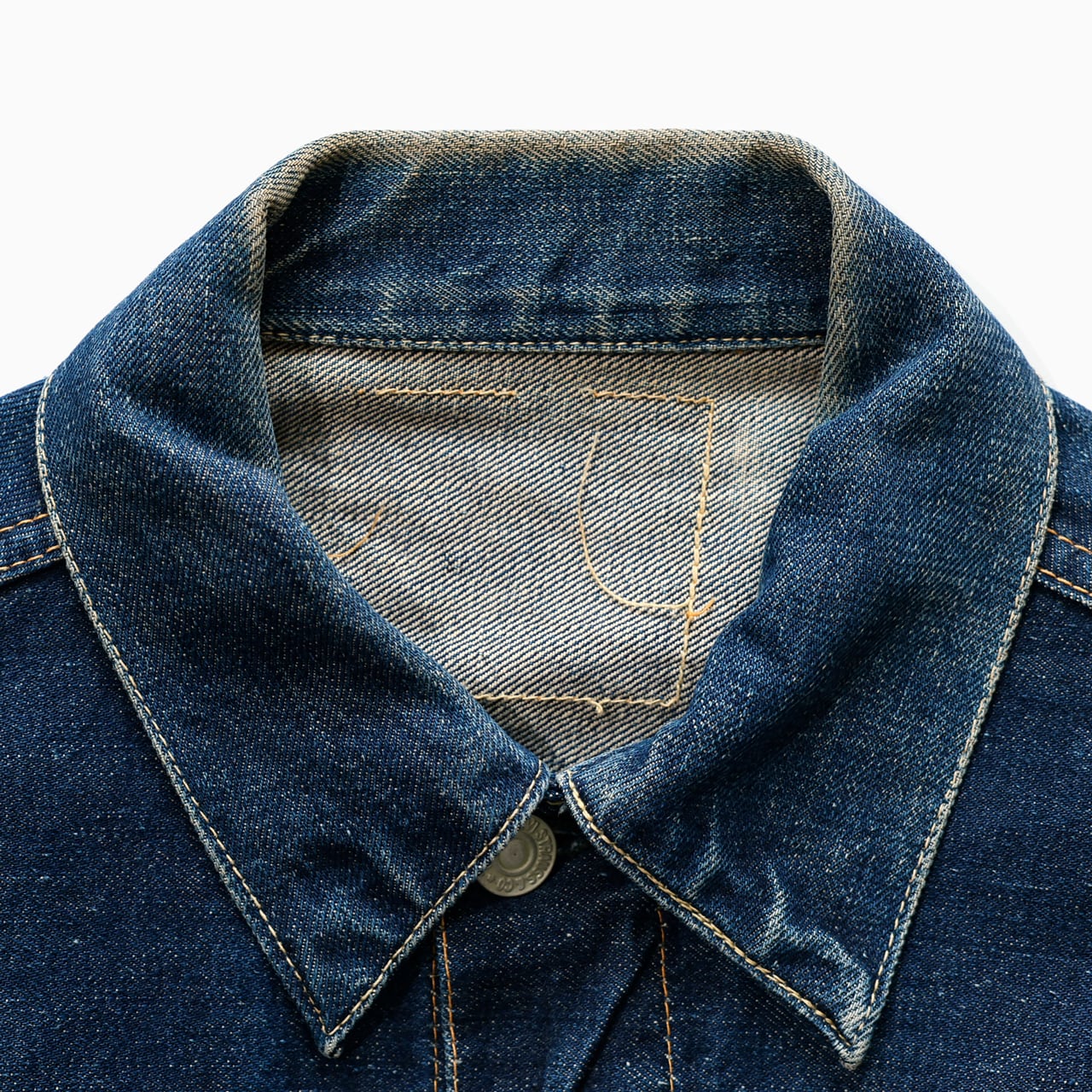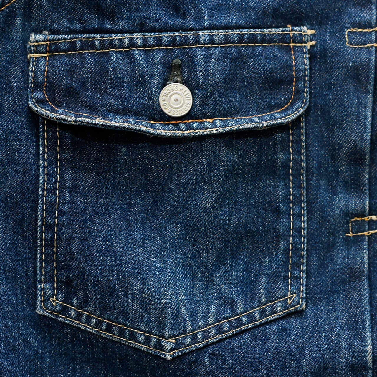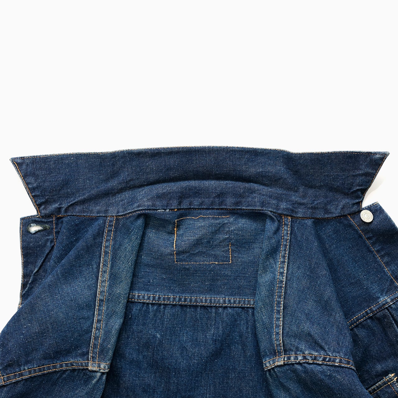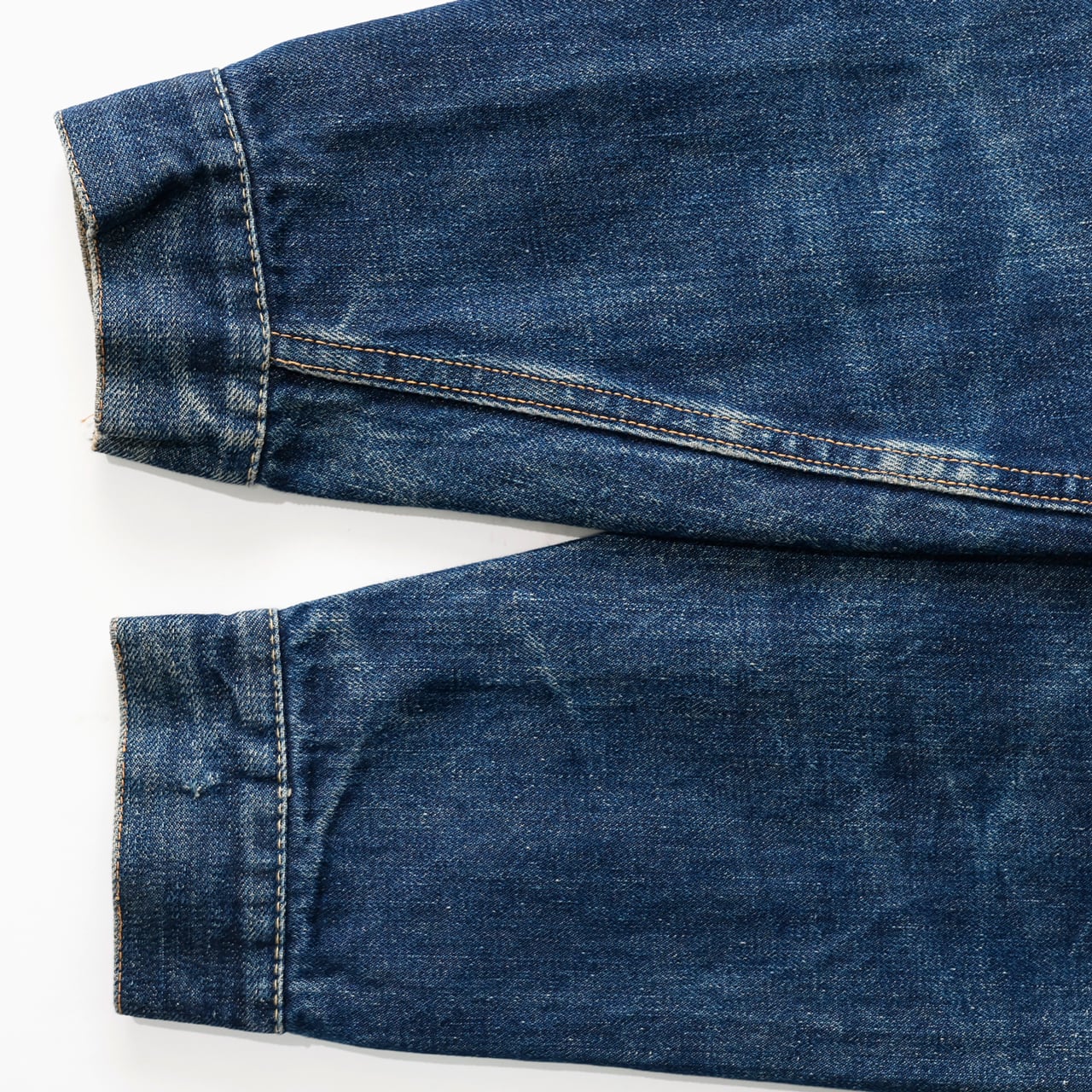 サイズは44相当とグッドサイズ。パッチは欠損しておりますが、革パッチ期ならではの深みあるインディゴがしっかりと残っており、色味の良さが際立つ一着。濃色を保っているため、これからの経年変化も楽しんでいただけそうです。
