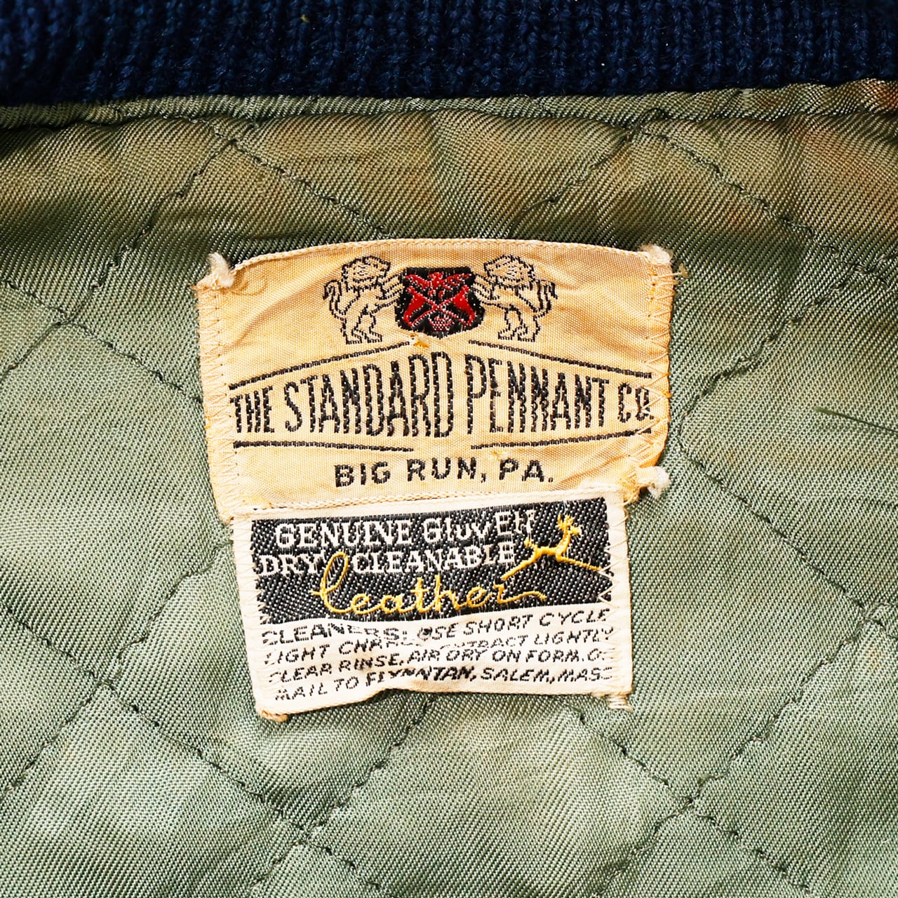 The Standard Pennant Co.社のヴィンテージスタジャン(アワードジャケット)です。ボディにはウール、袖にはレザー(本革)が使用され、裏地はキルティング仕様。なんといっても、デザインとカラーリングがかっこいい一着です。