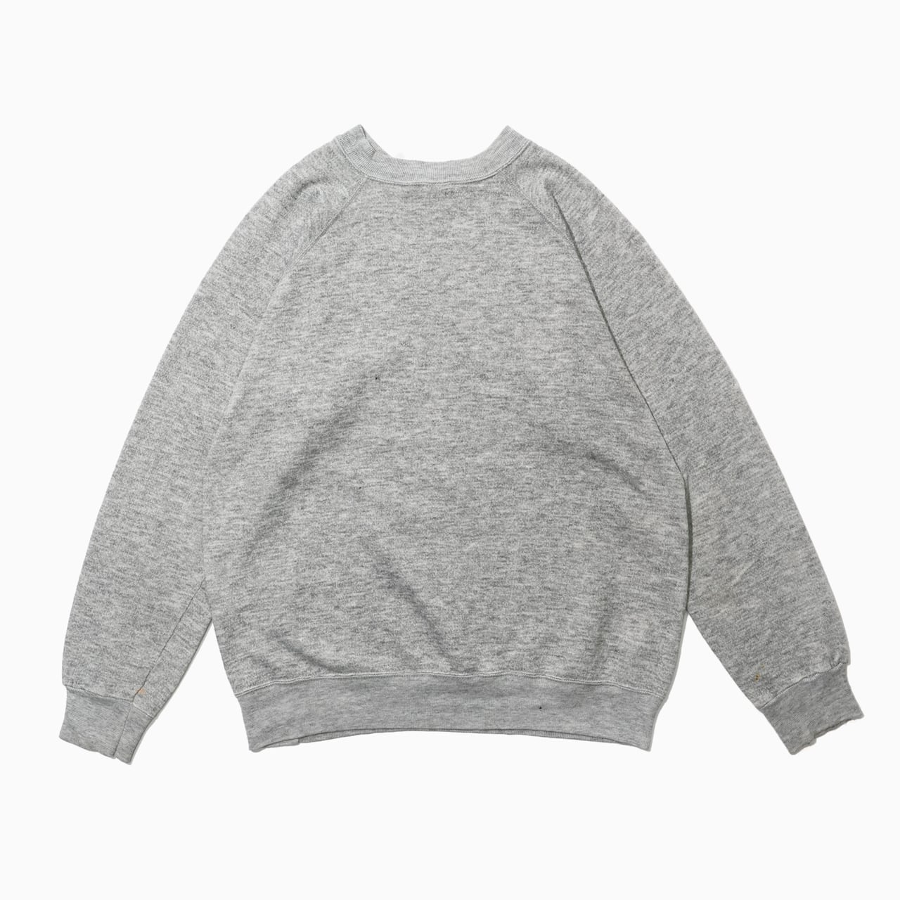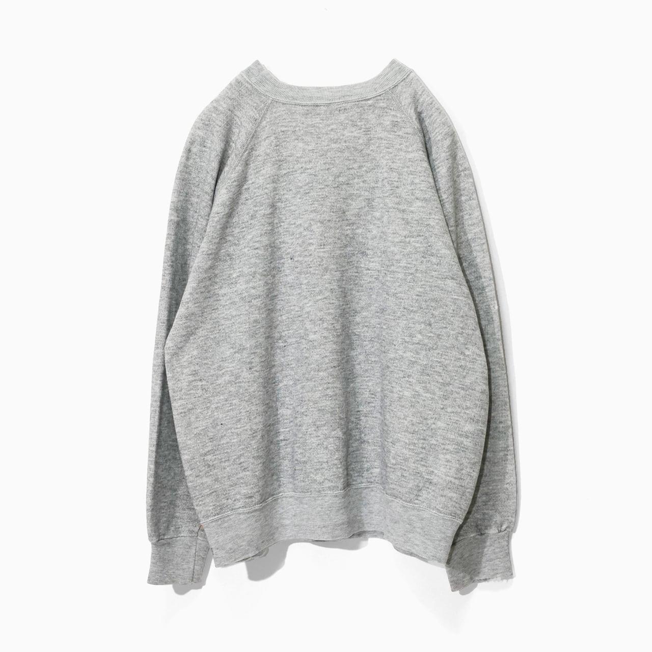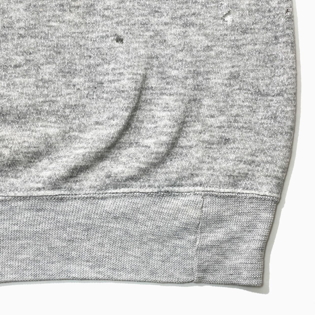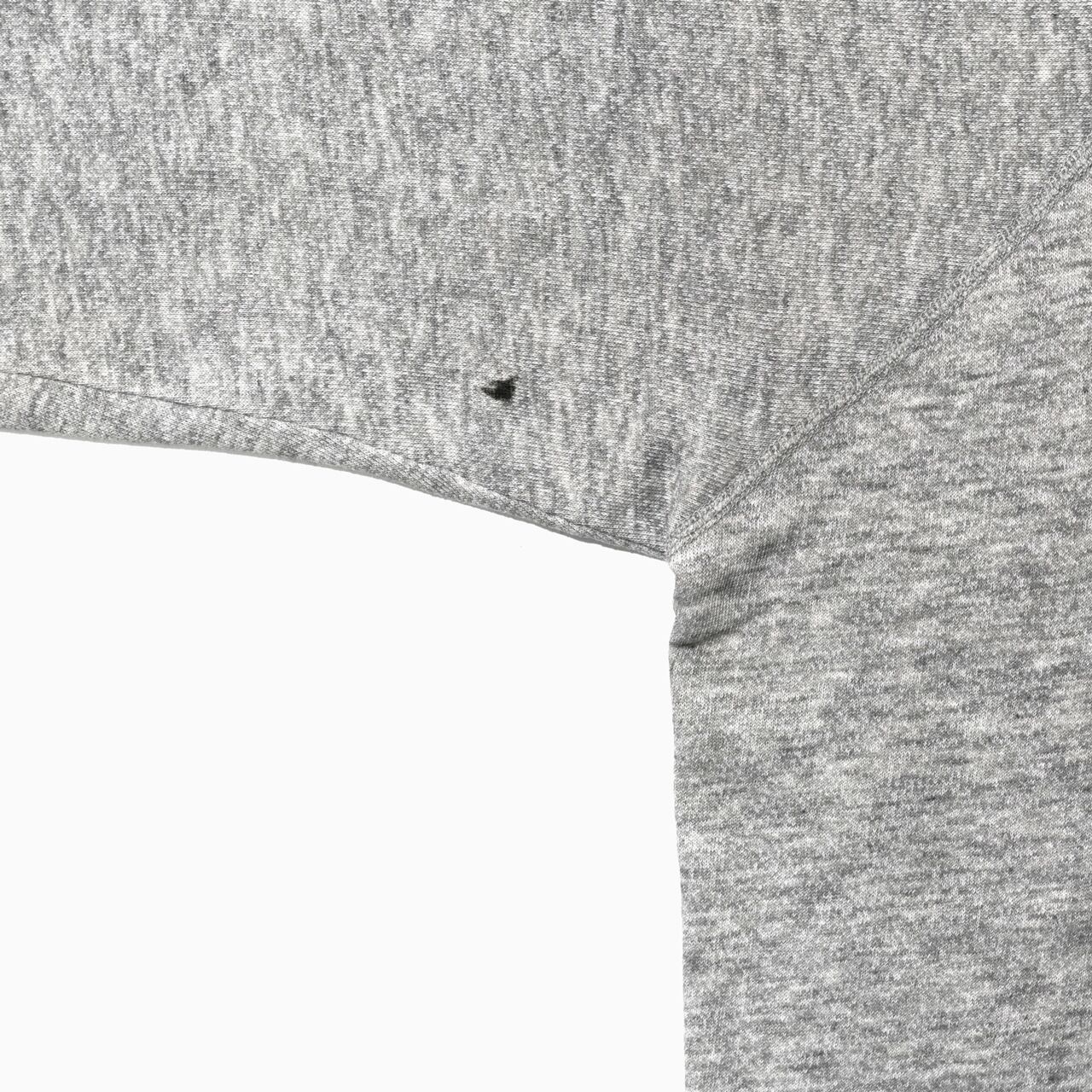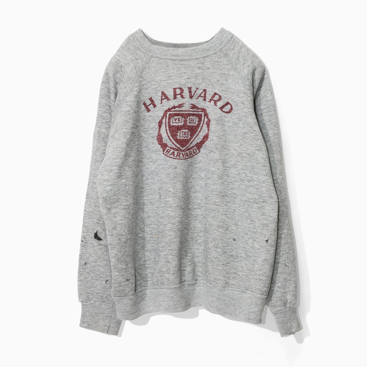 HARVARDの染み込みプリントが目を惹くラグランスリーブのスウェット。リアルなダメージや汚れが随所にあり、ヴィンテージな雰囲気が出ています。
