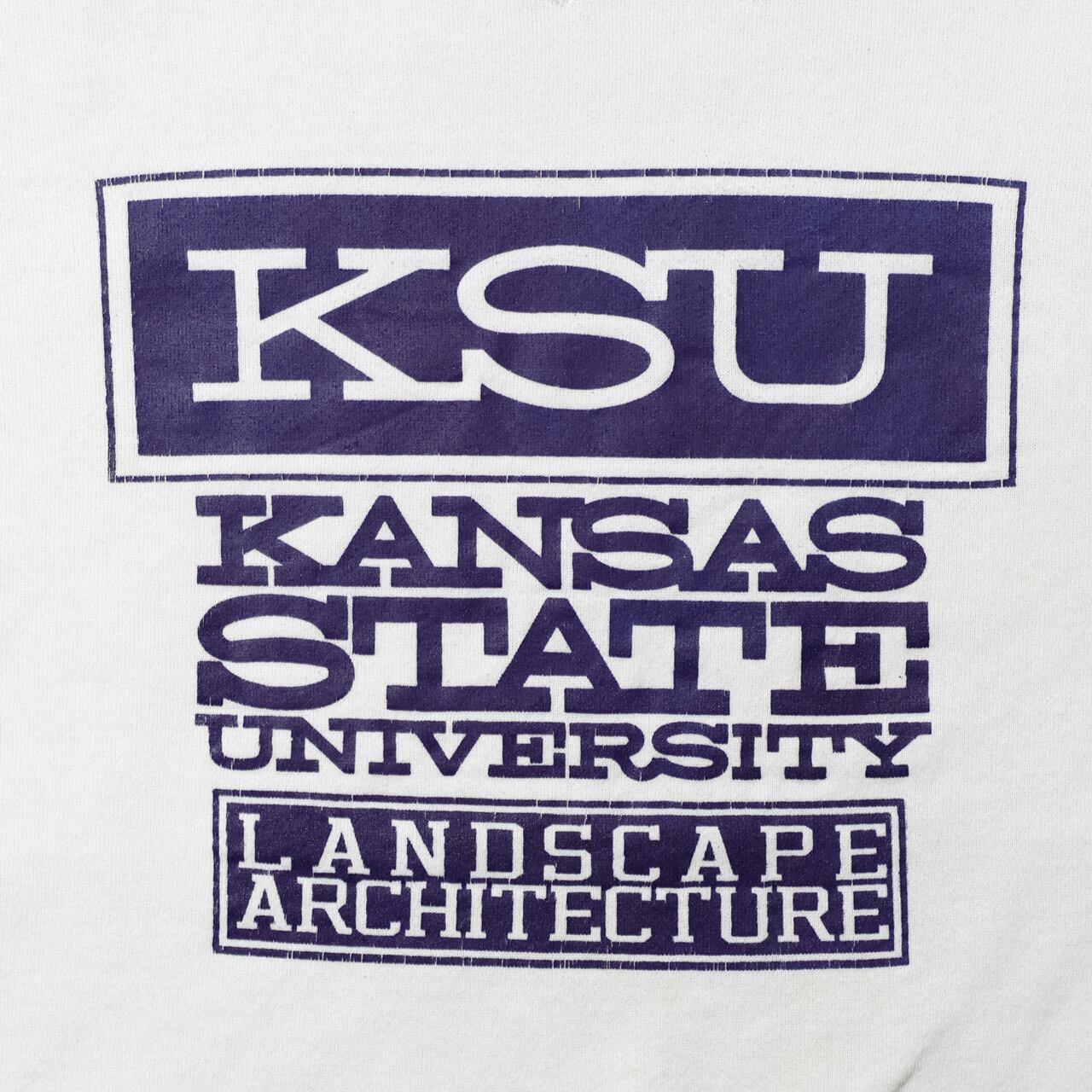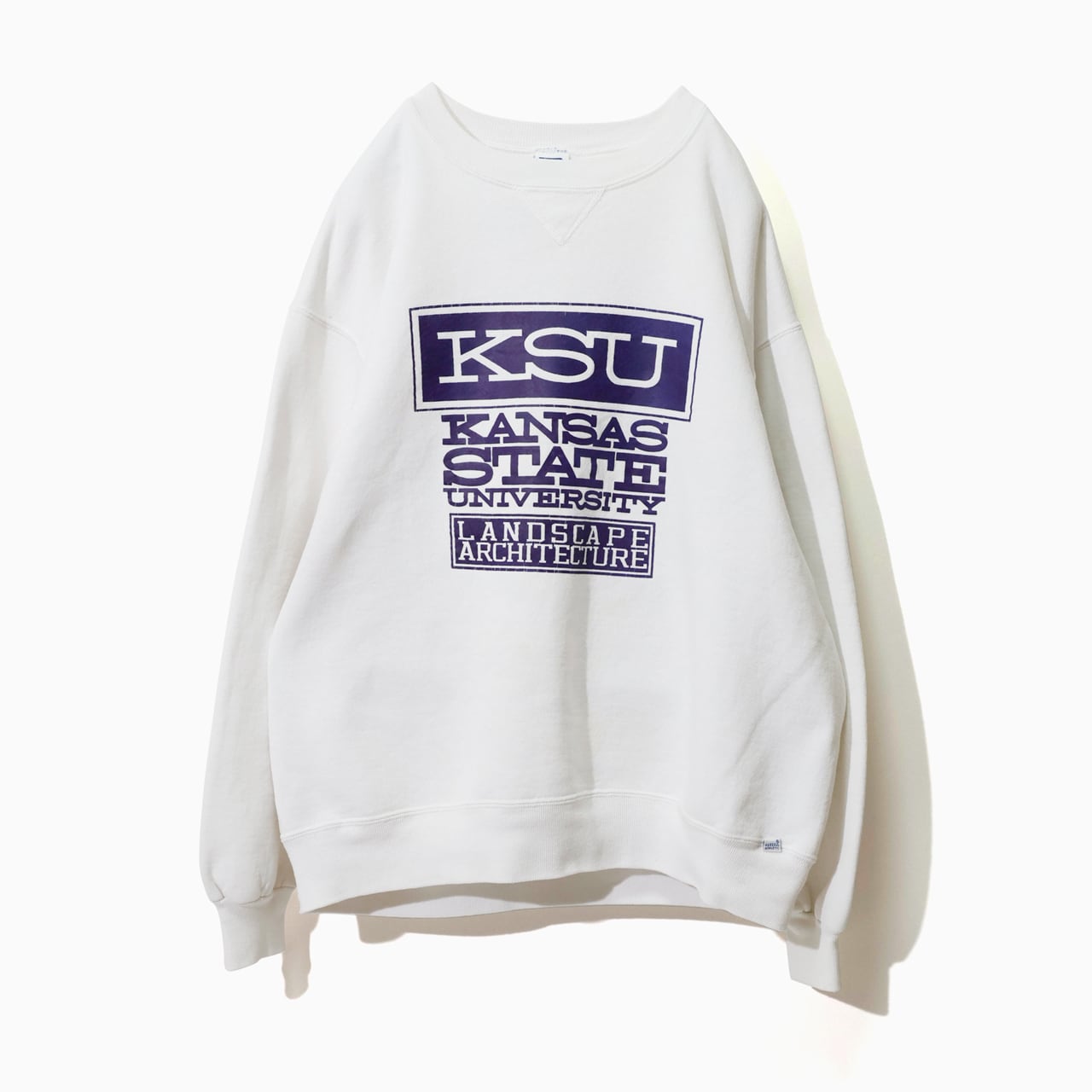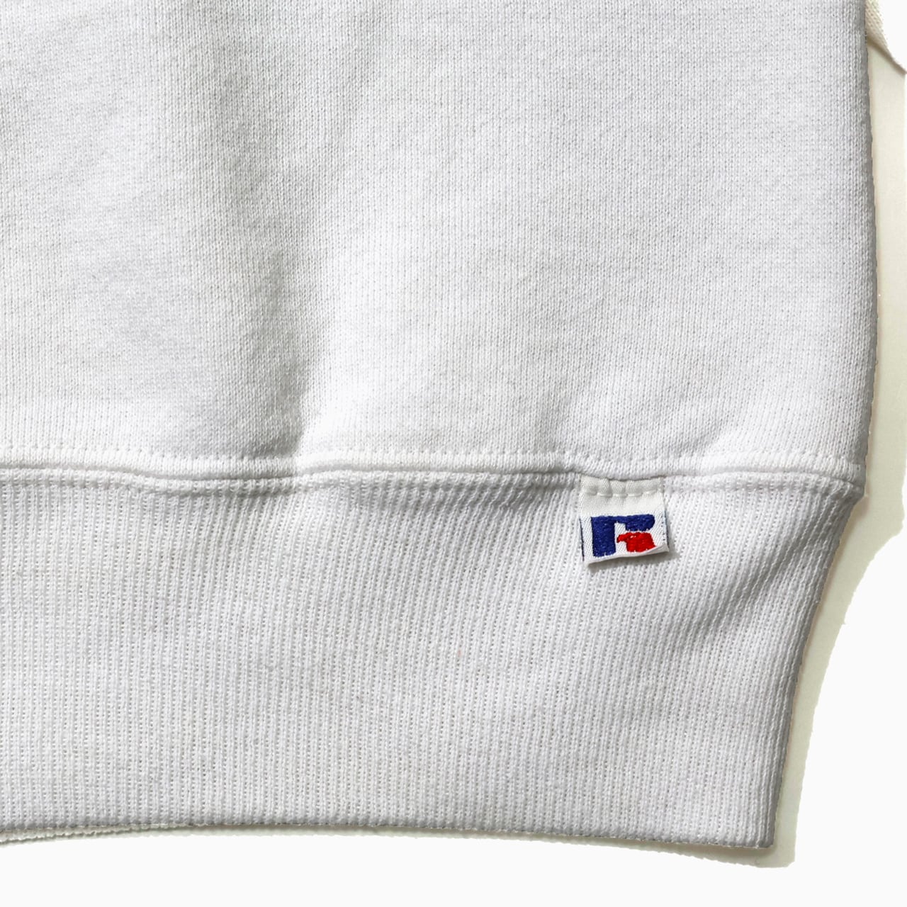 1990年代製のカレッジ物スウェット。この年代のRussellの特徴である左裾の「R」ロゴパッチや、首元の前Vガゼットが付くMade in USAのアイテム。サイズも大きめで配色も格好良い、スタイリングに合わせやすいスウェットです。